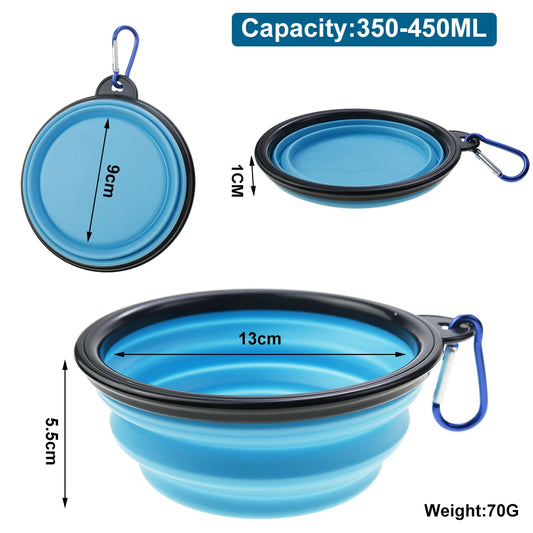 350ml Folding Pet Bowl - Portable Travel Dog & Cat Bowl with Keychain