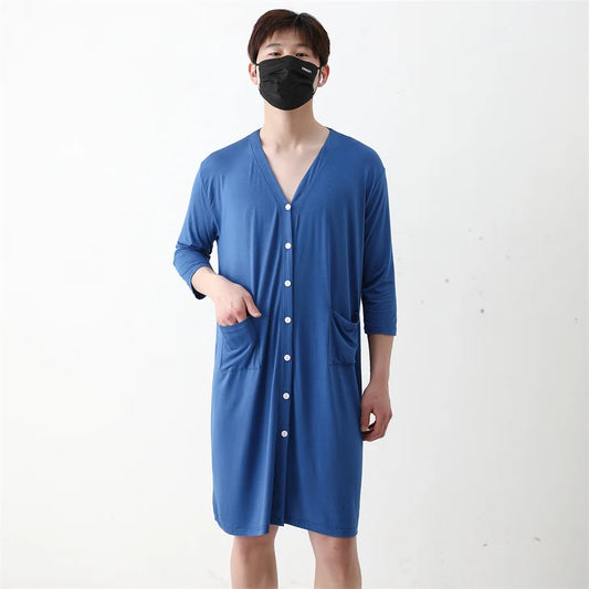 2024 Summer Men's Pajamas Robe Modal Cardigan Sleepwear Loose Bathrobe Male Shirt Dress Casual Draped Home Clothes for Men