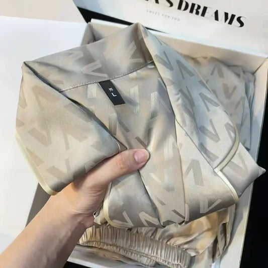 Summer Ice Silk Men's Two-Piece Pajamas Set Short-Sleeved Sleepwear Male Pajama Set Nightwear Sleepwear Suit Homewear