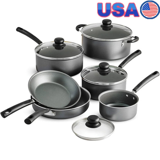 11 PCS Ceramic Pots & Pans Set with Glass Covers, Non-stick Cookware with lids, Pre-installed, Heat resistant