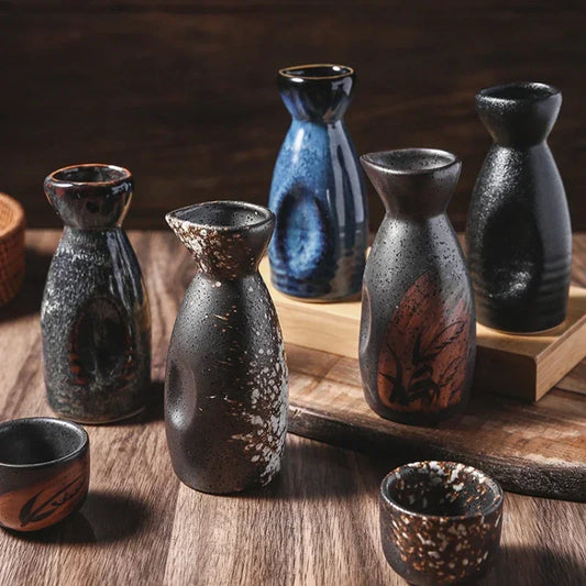2PCS Japanese Ceramic Teacups & Retro Sake Bottles
