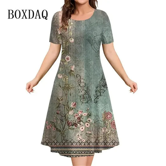 Women’s Dresses 3D Flowers Pattern Short Sleeve Clothing