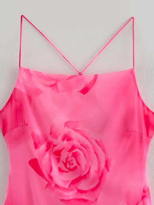 Summer Satin Backless Suspender Ruffled A-Hem Dress