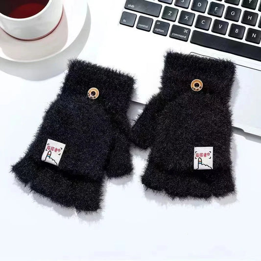 Thickened Women’s Cat Claw Paw Plush Fingerless Winter Gloves
