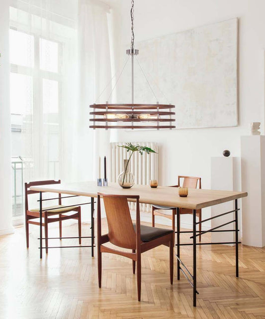Catalina 24"W 6-Light Polished Nickel Drum Modern Pendant Mahogany Wood Finish Shade