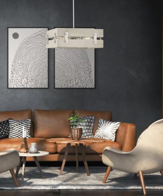 Hemsworth 4-Light 18"w Coastal Farmhouse Pendant Light Fixture Galvanized Bleached Oak Finish by Progress