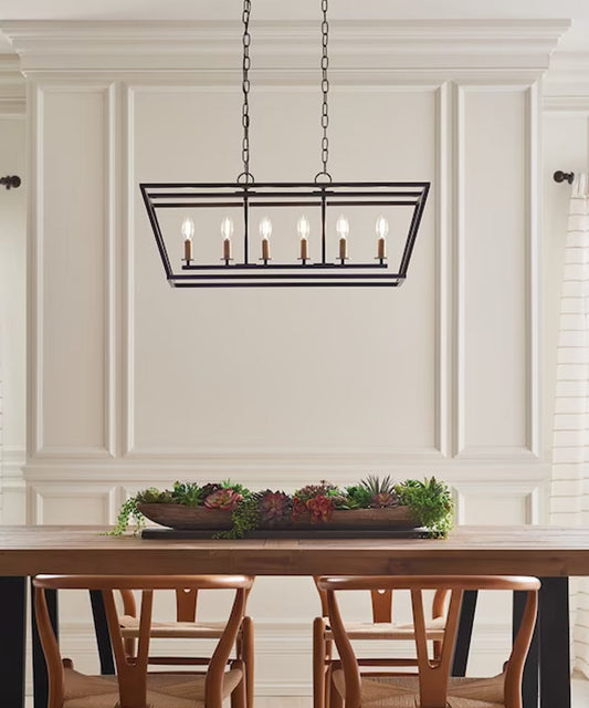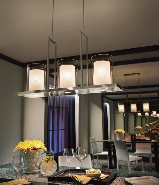 Triad Collection 6-Light Linear Chandelier with Layered Glass Shades – Pewter Finish
