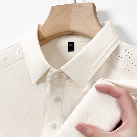 Men's Hollowed-out Polo Shirt - Breathable Slim Fit for Summer