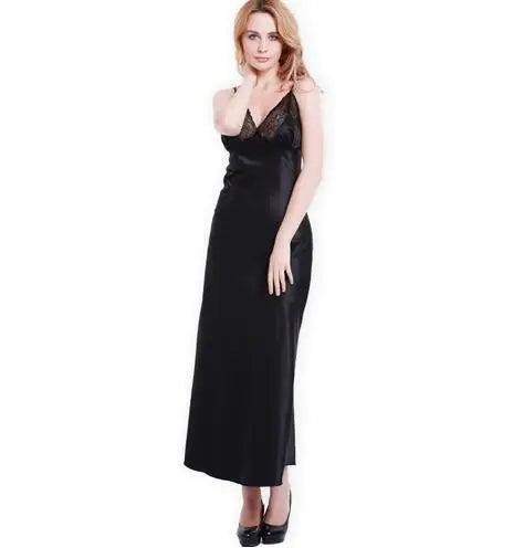 Sexy Satin Night Dress - Sleeveless Long Robe Gown
