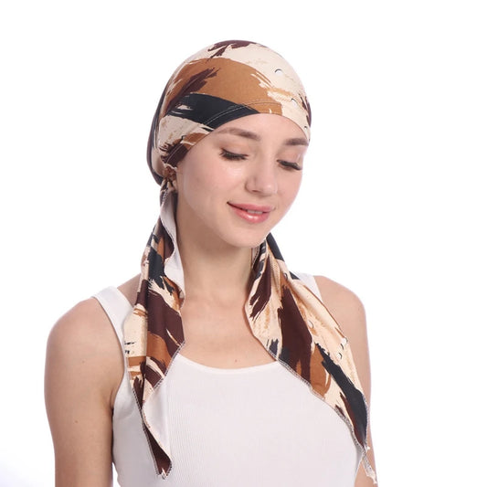 Floral Print Headscarf Cap | Pre-Tied Tassel Hijab Turban