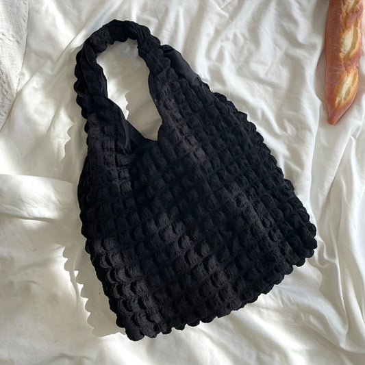 Ruched Tote Bag | Pleated Shoulder Bag | Bubble Handbag - Fashion for Women