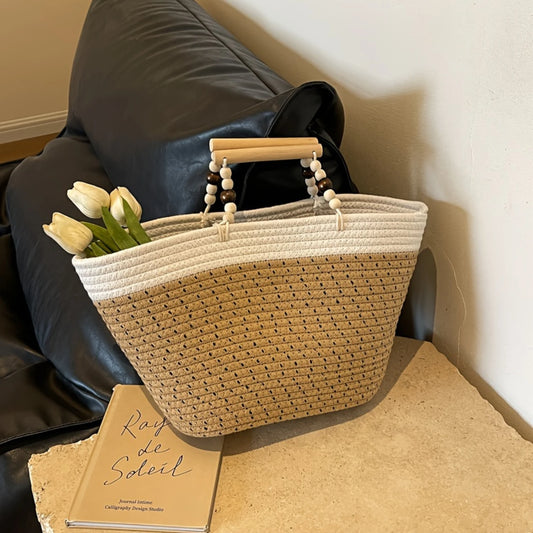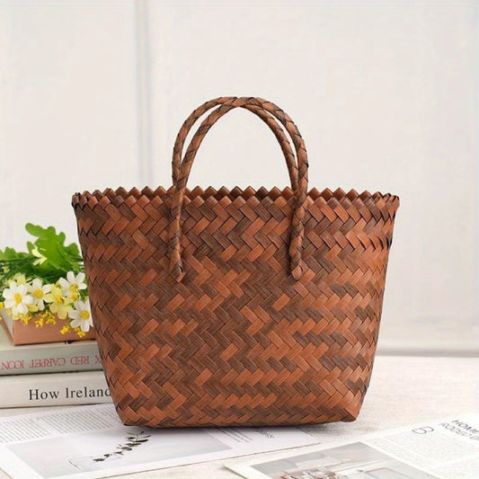 Imitation Rattan Woven Tote Bag - Women’s Beach & Travel Bag
