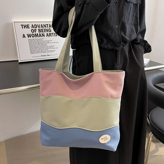Large Canvas Tote Bag - Women’s Color Block Vintage Shopper