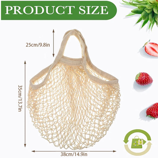 Portable Reusable Grocery Bags - Cotton Mesh String Shopping Tote