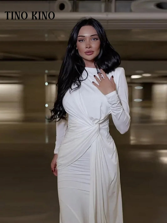 Vestido largo plisado anudado - Elegante bata blanca ajustada para fiesta