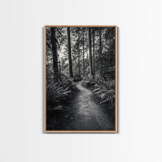 Fern Pathway, Enchanted Forest, Woodland Trail, Framed Canvas Print, Nature Walk Wall Art, Boho Bedroom Decor, Moody Landscape Style