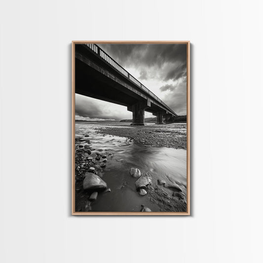Stormy Bridge, River Rocks, Dramatic Sky, Moody Photography, Office Wall Art