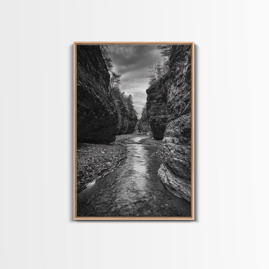 Canyon River, Rugged Path, Rock Walls, Adventure Nature, Framed Canvas Print